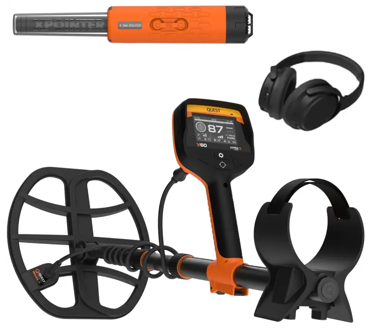Der Quest V60 hat einen Frequenzbereich von 5 bis 60 KHz und verfügt über die HyperQ-Technologie, mit der Sie alle Suchfrequenzen gleichzeitig nutzen können. Er ist bis zu 5 m wasserdicht und verfügt über einen Teleskopgriff, der bis auf 49 cm eingeschoben werden kann. Der V60 wird mit kabellosen Quest Wirefree Vibe Kopfhörern geliefert und ist mit einer 28 x 26 cm großen Blizzard-Suchspule für optimale Leistung ausgestattet. Der integrierte 5000-mAh-Li-Po-Akku kann über ein USB-Typ-C-Kabel aufgeladen werden und hält bei voller Ladung 10 bis 15 Stunden. Kurzum, ein professioneller Top-Detektor mit einem sehr guten Preis-/Leistungsverhältnis!
