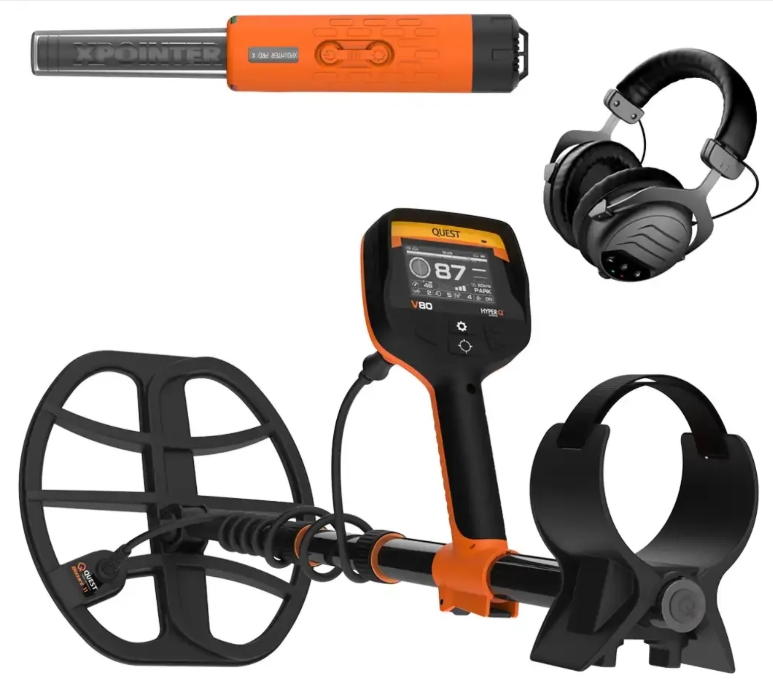 Der Quest V80 hat einen Frequenzbereich von 5 bis 80 KHz und verfügt über die HyperQ-Technologie, mit der Sie alle Suchfrequenzen gleichzeitig nutzen können. Er ist bis zu 5 m wasserdicht und verfügt über ein 4-teiliges Teleskopgestänge aus Carbon, der bis auf 49 cm eingeschoben werden kann. Der V80 wird mit kabellosen Quest Wirefree Pro Kopfhörern geliefert und ist mit einer 28 x 26 cm großen Blizzard-Suchspule für optimale Leistung ausgestattet. Der integrierte 5000-mAh-Li-Po-Akku kann über ein USB-Typ-C-Kabel aufgeladen werden und hält bei voller Ladung 10 bis 15 Stunden. Kurzum, ein professioneller Top-Detektor mit einem sehr guten Preis-/Leistungsverhältnis!