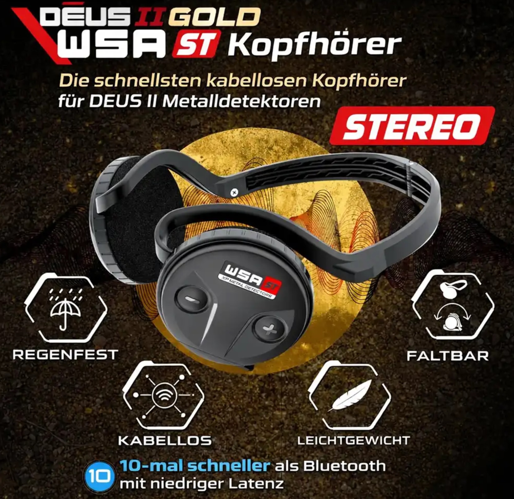 Der XP Deus 2 Gold Metalldetektor ist der weltweit erste vollständig kabellose Fast Multi Frequency (FMF) Metalldetektor und setzt neue Maßstäbe bei der Suche nach Gold und anderen wertvollen Objekten. Dank der von XP patentierten, ultraschnellen Funktechnologie arbeitet das System bis zu 10-mal schneller als Bluetooth Low Latency und sorgt für eine besonders präzise, stabile und reaktionsschnelle Ortung. Die kabellosen Kopfhörer sind bereits im Lieferumfang enthalten und machen das Sondeln noch komfortabler.